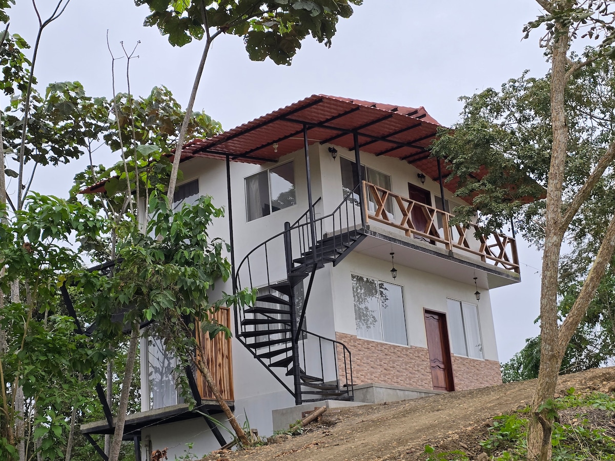 Esta cabaña hecha con materiales naturales, está situada en la cima de una colina, al borde de una reserva forestal y proporciona maravillosas vistas panorámicas de la playa de Ayampe (con su emblemático Islote de los Ahorcados) y el bosque tropical. Desde ella podrás contemplar noches claras y llenas de estrellas, dormir con el rugido lejano del mar, despertar con el sonido de las aves tropicales y disfrutar de los mejores atardeceres que ofrece el Pacífico ecuatorial.