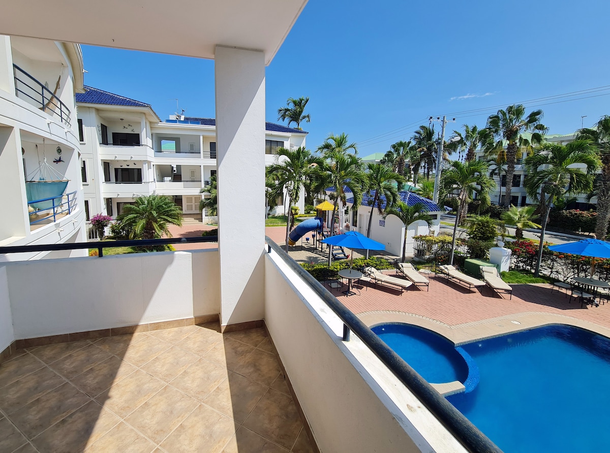 Life is about moments! Build memories to treasure in our unique beach front spot with pool, free parking and great views. Enjoy our modern cozy beach place, where you will find a fully equipped kitchen, comfy rooms with blackout curtains and a balcony to enjoy breath taking ocean views and sunsets!☀️ Enjoy local & international cuisine at Montanita & Olon (8 mins away) or find an adventure near by (paragliding, waterfalls, surf lessons) 2 Smart 65’ TVs; alexa; beach tent & chairs included!