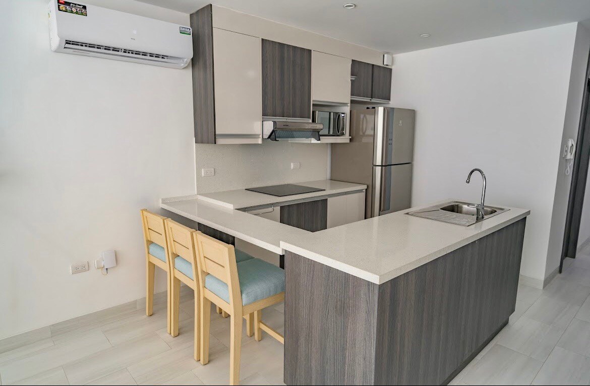 Here you'll find Incredible beach views, a pool, jacuzzi, sauna, fitness room, grilling area, and of course, a welcoming home! (Amenities are shared for all building guests & No Pets Allowed) This modern and charming apartment is only a few steps from the beach. Located in San Lorenzo, Salinas. 5 minutes away from supermarkets and shops as well as restaurants and beach clubs. Beautiful ocean view from living room and terrace. We have our own generator- no electricity cuts !!