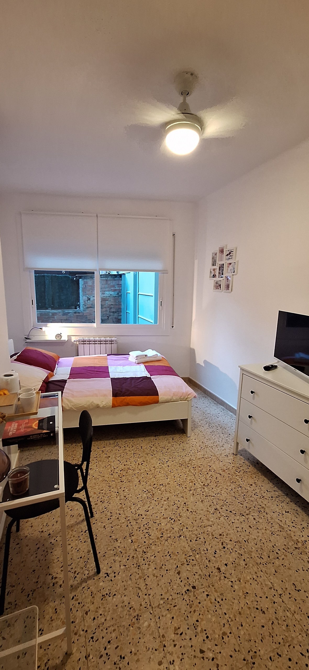 Fully refurbished flat with a private 40m2 solarium terrace. Chill out area with views over the city. Next to the Courts of Justice (police patrols 24/7). Metro L1 red: 12 minutes to city center. Fast connection with airport and high speed train. No lift (4th floor). No parties or loud music allowed. Smoking only allowed in terrace / balcony. English spoken. Visco elastic mattress 155 cm (Queen). Official touristic license in place. Check in available at any time. Sofa-bed available.