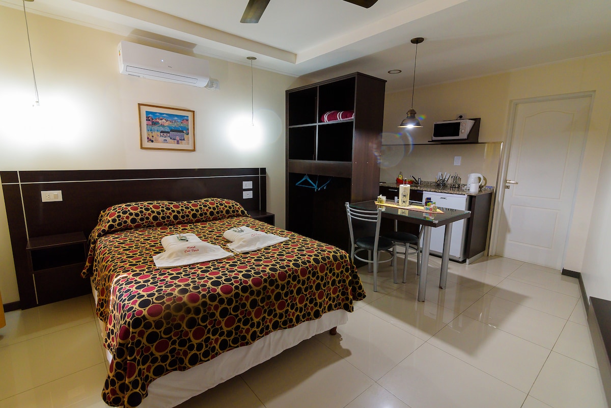 Descubre la comodidad y la belleza en nuestro acogedor apart hotel, ubicado en pleno centro de la ciudad de Santa Fe. Nuestras amplias suites ofrecen vistas panorámicas de la ciudad. Además, estamos a solo 10 cuadras de la estación de colectivos, lo que facilita tu llegada. ¡Disfruta de una estadía inolvidable en el encanto de Santa Fe en nuestro apart hotel!