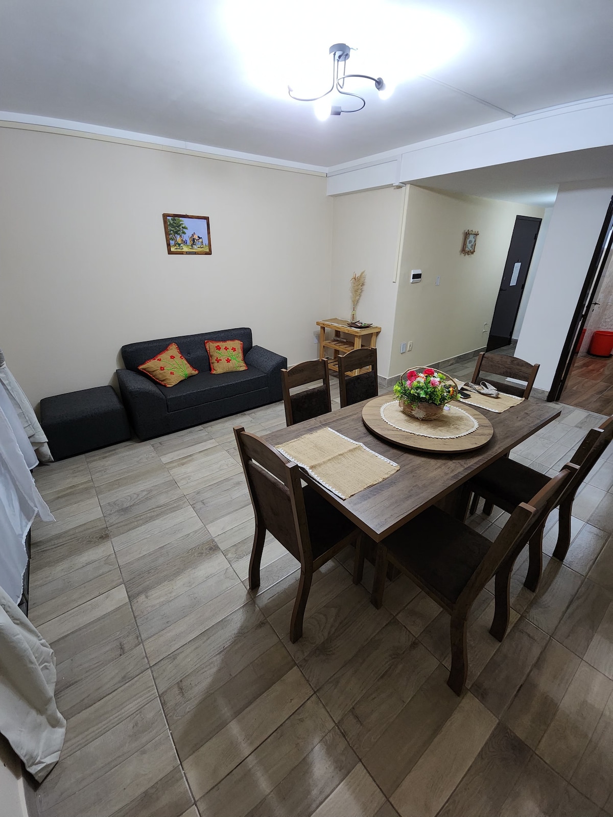 Departamento cómodo, nuevo, luminoso. Ideal para 4 personas. Ubicado a 7 cuadras de la Terminal de Ómnibus y a 12 cuadras del centro de Paraná. El departamento dispone de Wi-Fi, TV de pantalla plana, cocina, microondas, tostadora, pava eléctrica, secador de cabello y heladera con freezer. Cuenta con calefacción y A / C. Se ofrece ropa blanca y amenities de baño. El complejo posee alarma, cámaras de seguridad, patio con churrasquera y terraza de uso común.