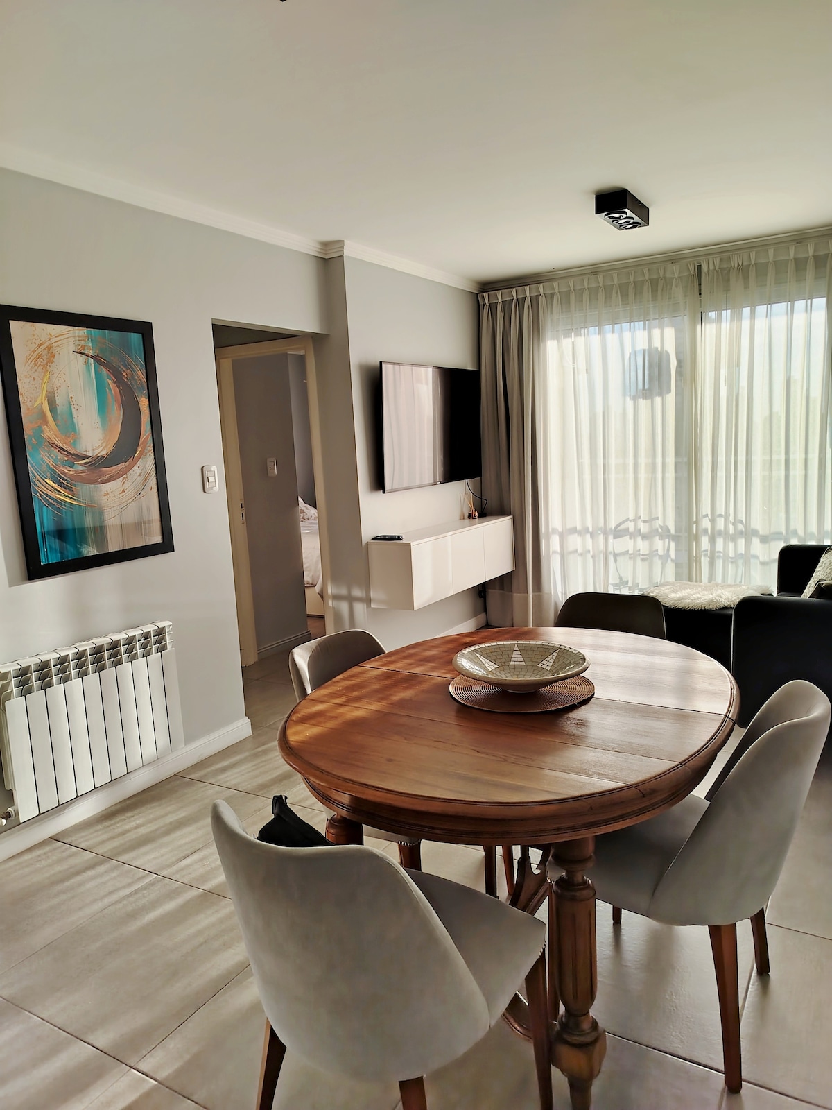 ✨ Departamento moderno y luminoso en Santa Fe Capital. Cuenta con dormitorio con cama queen (1,60 m) y TV, baño con ducha potente, amplio living comedor con TV, aire acondicionado y calefacción por radiadores. Cocina equipada con heladera y lavarropas. Balcón con camastro. Piscina en el edificio. Excelente ubicación, cerca de bulevares, bares, centro y terminal. Ideal para dos personas, parejas o viajes de trabajo.