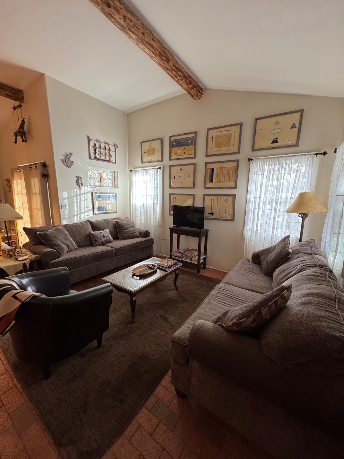 Our 2 story town home is located 5 miles from The Plaza, tucked away just off main roads in quiet neighborhood where you can hear birds chirping and go for morning walk away the city hustle and bustle. Centrally located, it is a short drive away from everything… Meow Wolf, excellent restaurants, museums and the Plaza. We are delighted to offer you our home as a resting place from your daily adventures while in Santa Fe.