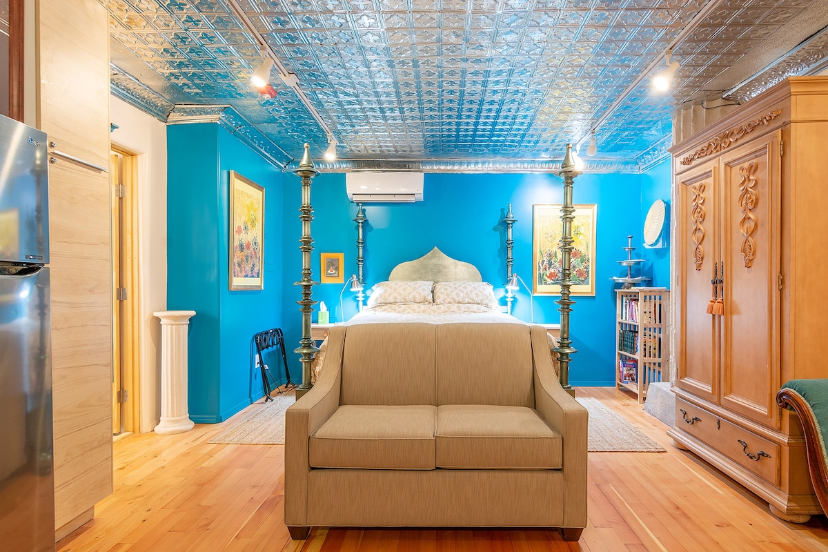 Super clean. You'll love staying in one of our cities' most interesting artist neighborhoods, where locals live. Baca St is Centrally located, just 1.8 miles from the plaza and not far from Meow Wolf & main museums. We are in a local arts area. If you want to stay on the plaza in the tourist area this is not us. We have no TV but 300 MSP WIFI. Your super clean, elegant room, full of eclectic art, has a comfy king size bed, AC, a sleeper couch, full kitchen, fridge, table & private patio.
