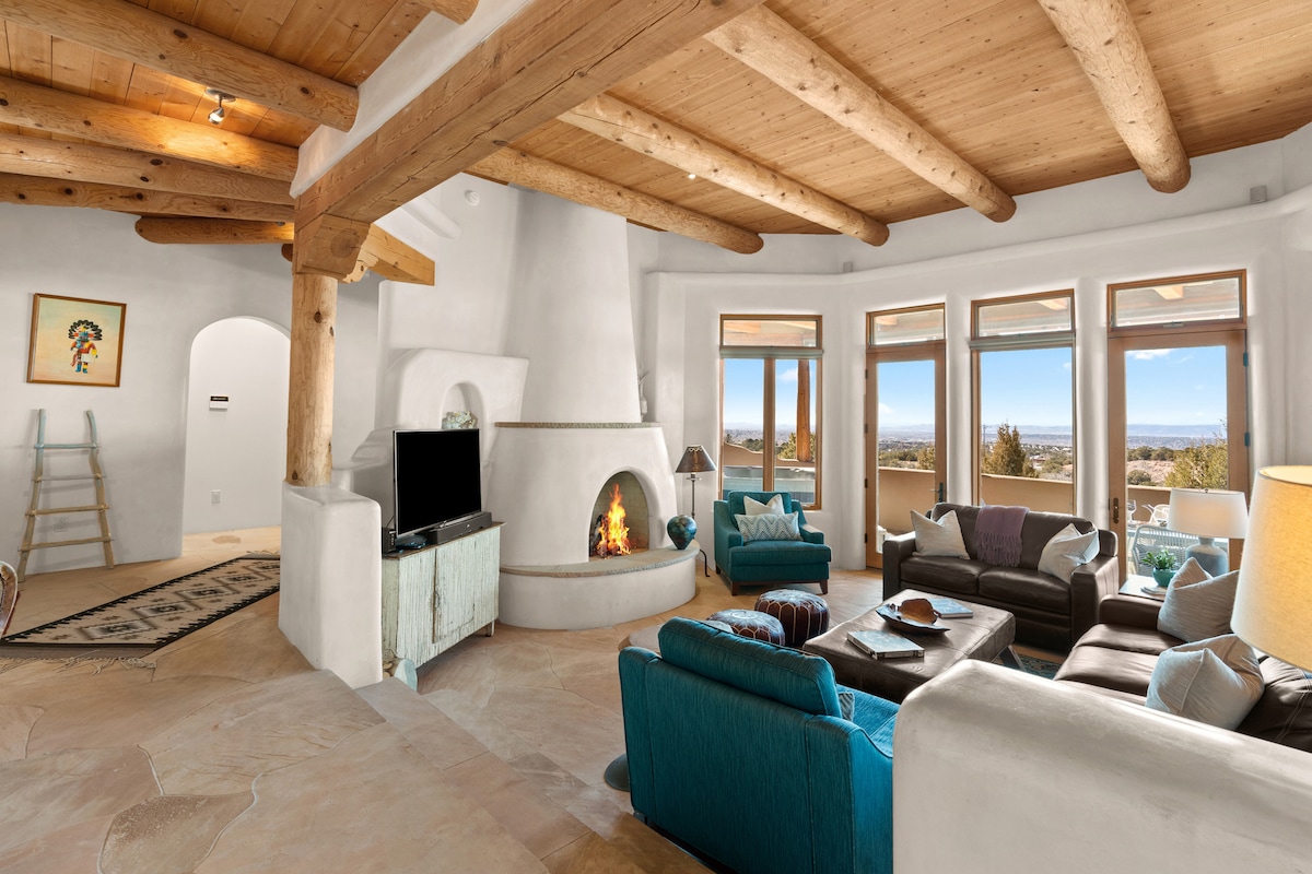 Stylish adobe retreat just ten minutes drive from the plaza in Santa Fe. Quiet home in a scenic part of Santa fe. Just off the Veteran's Memorial Highway , the views are simply stunning. 360 degrees mountain views from the property include the Sandia mountains of Albuquerque, the Sangre de Christo mountain range of Santa Fe and the Jemez mountain range near Los Alamos .