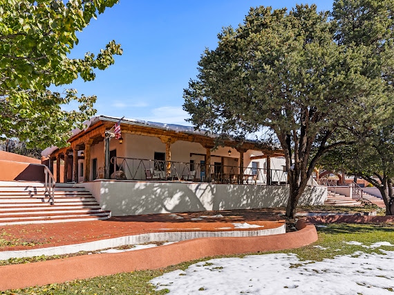 Beautifully restored 4BR/2.5BA farm casa just outside Santa Fe. Enjoy farm-fresh eggs, seasonal produce, and meet goats, sheep, chickens & ducks. Relax in the TV room, work with Starlink internet, or train in the covered outdoor gym. Picnic beneath old cottonwoods, stargaze by night, and take in stunning views of Ski Santa Fe, the Pojoaque Badlands & Jemez Mountains. Gateway to Northern NM adventures!