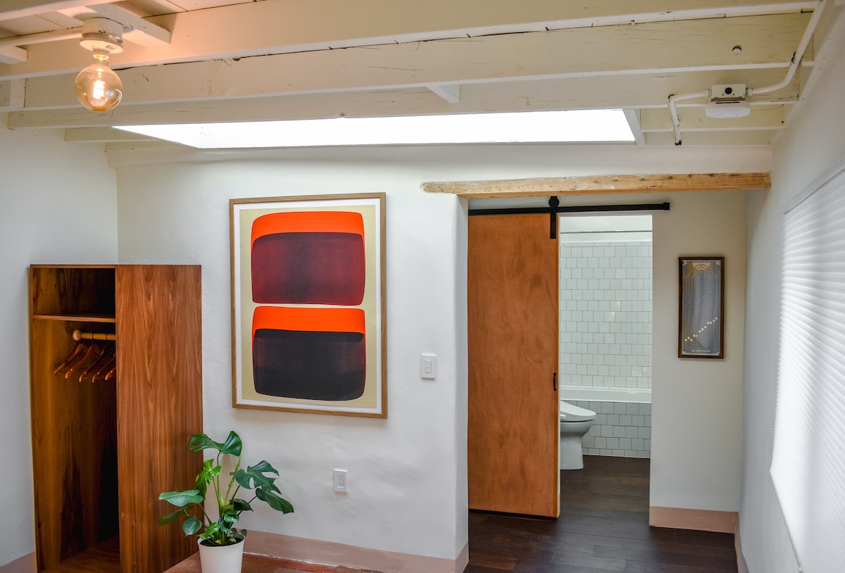 The jewel of 215 Washington oozes ‘Santa Fe modern.’ The “Pippa” is a one of a kind space and guests are raving about the beds, linens, and coffee options. The penthouse comes with a full kitchen and sleeps up to four guests. Stretch out on the oversized leather couch and take in the suite’s mid-century modern furniture, hip photography, Navajo-style rugs and Oaxacan tiles. The building is just steps from the Santa Fe Plaza and all the restaurants, bars and shops Santa Fe has to offer.