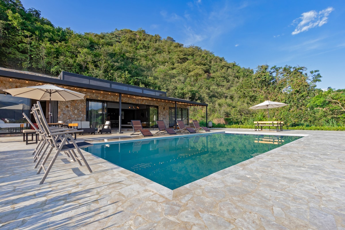 美丽的别墅,带迷你游泳池,四周环绕着大自然。