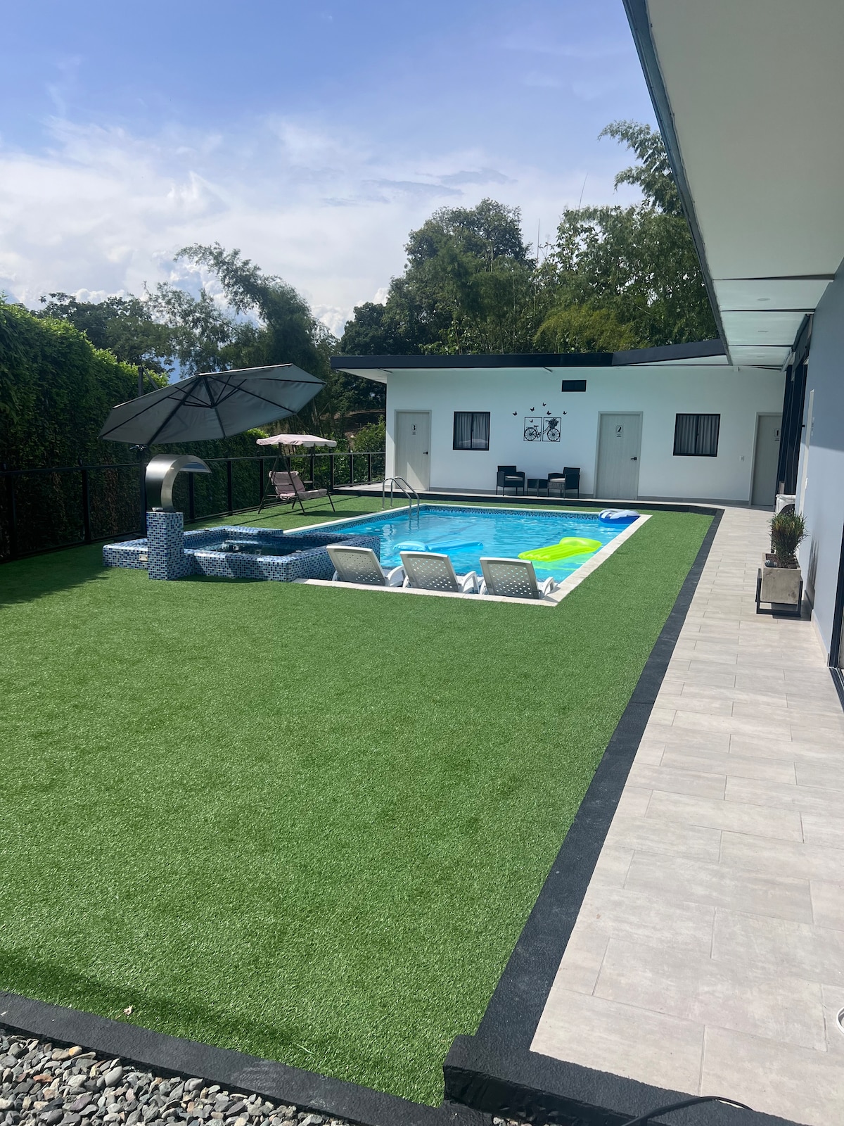 Disfruta del confort de esta lujosa casa de 4 habitaciones y 3 baños, con impresionantes instalaciones estilo resort, ubicada en San Jerónimo. Situada en una exclusiva comunidad residencial, es perfecta para escapar del bullicio de la ciudad, y a solo minutos del parque principal de San Jerónimo. ✔ Piscina ✔ Cocina totalmente equipada ✔ Smart TVs ✔ Wi-Fi de alta velocidad ✔ Parqueadero gratuito ✔ Gimnasio ✔ Cancha de fútbol ✔ Cancha de tenis ¡Descubre más a continuación!" ✨🌴🏡