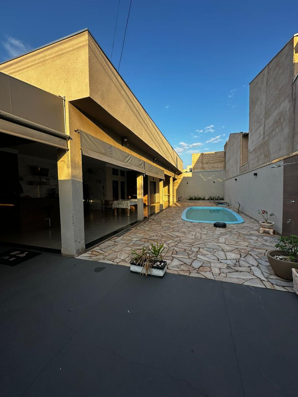 Casa grande e espaçosa, com 3 suítes, duas com cama de casal e uma com duas camas de solteiro, garagem grande com 4 vagas, área de churrasco ampla com piscina, cozinha equipada, fogão 5 bocas, forno, micro-ondas, geladeira com freezer e utensílios de cozinha. Área de serviço com máquina de lavar roupa. A casa fica junto ao centro da cidade em área muito tranquila e tem locais próximos para comer a noite e com uma caminhada de 5 min você chega na melhores pizzaria e pastelaria da cidade.