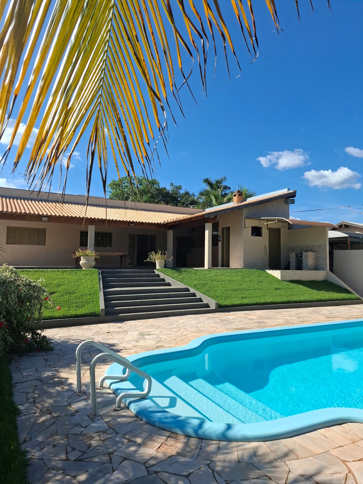 Relaxe com toda a família nesta acomodação tranquila. Uma ótima acomodação para desfrutar da tranquilidade do interior, fácil acesso, piscina aquecida, churrasqueira com gira grill, portão automático, quartos com ar-condicionado e ventilador e um espaço com muito paisagismo.