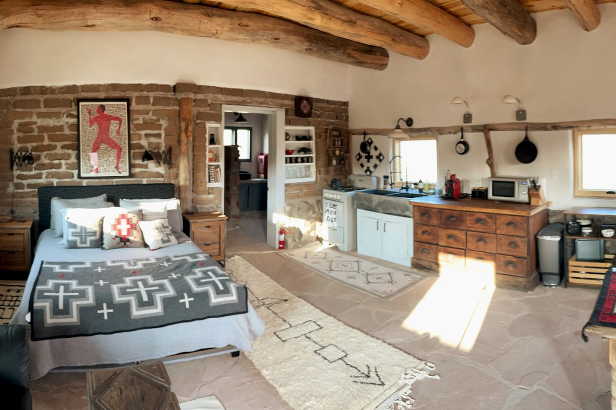 A tranquil experience and secluded getaway, yet easily accessible below the stunning Cerrito Blanco in Abiquiu. This 800 square foot casita makes the perfect weekend or week-long getaway for a couple or small family looking for a unique experience in beautiful Abiquiu. Sip your coffee outside or along the river, practice yoga, meditate, read, write, stargaze, bird watch and take in the beauty of the Chama River Valley, right in the heart of Tewa country!