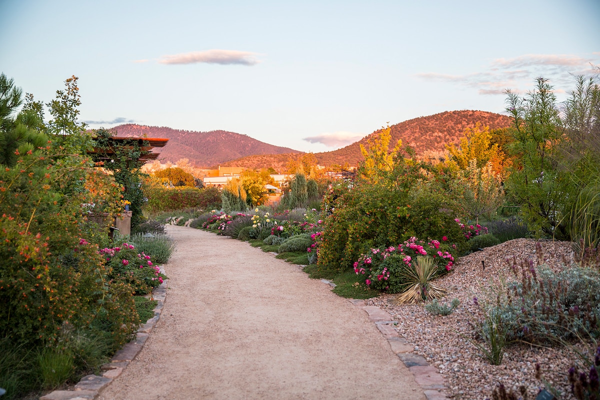 A recent guest sent this message: “Best AirBnB experience ever! My husband and I enjoyed our peaceful stay. Thank you for everything.” This totally remodeled guest apartment has a fully-equipped kitchen, king bed, large patio and washer/dryer. My home is located on almost 3 acres, offering mountain, sunrise and sunset views and just steps from 4 world-class museums and the botanical garden. The Plaza, Canyon Road and the Railyard District are quickly accessible by car.