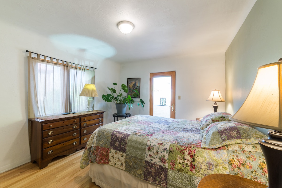This historic Spanish style hacienda in the private village of Los Ranchos de Albuquerque is close to Old Town Albuquerque, the Ballon Fiesta Park, the Rio Grande River, wineries, and wonderful museums and restaurants. In a semi-rural setting, this property offers a luxurious courtyard off of the main house, an outdoor pool, a fruit orchard, and a lovely mountain view. Well suited for individuals, families, and large groups, it is also beautiful site for retreats.