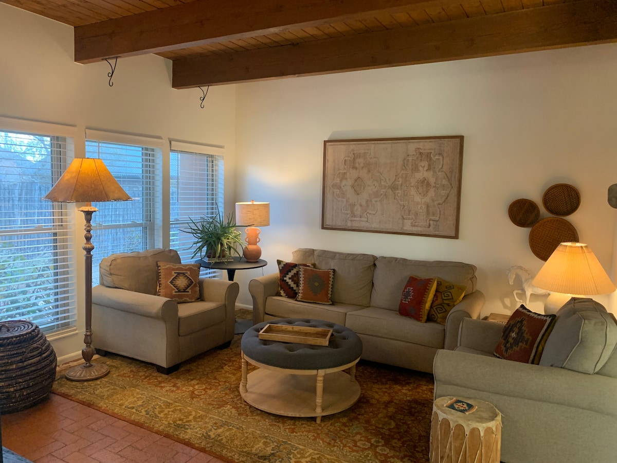 Our home is 2 miles from The Plaza, in a quiet and peaceful neighborhood, just a couple of houses down from Santa Fe River Trail walk. It is also centrally located and a short drive from everything. Our house rules are simple. We observe quiet hours from 9PM to 9AM and we do not allow pets, partying or smoking of any kind. Also, our place is not suitable for infants or children.