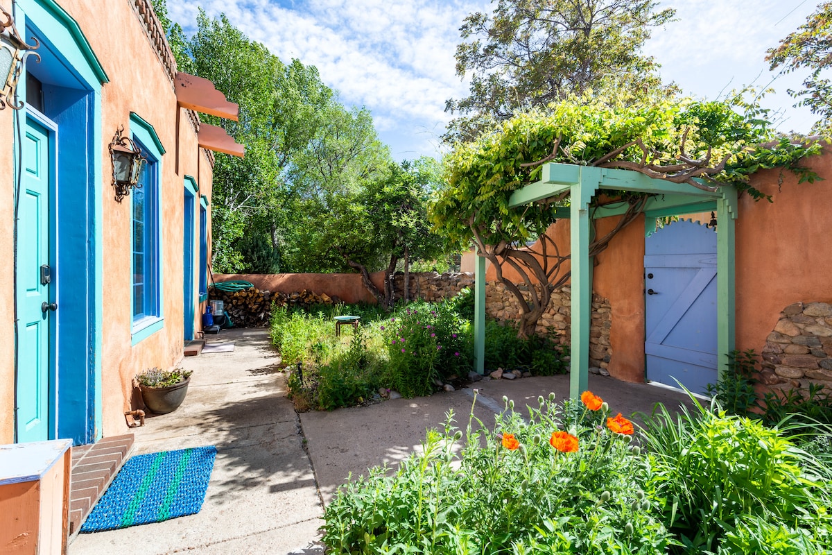 🌜H I D E A W A Y N O R T E: an inspiring & cozy adobe for your high desert adventure 🌵EASY 3 MINUTE WALK to Santa Fe's best restaurants, bars, coffee shops, boutiques, movie theaters, farmers and artisan markets. 🌵Train direct from ABQ + skip the rental car 🌵King + Queen beds 🌵Fast ⚡️ WIFI 🌵Fireplace + AC/heat minisplits 🌵Bonus Sunroom w/couch and TV 🌵Private patio 🌵Full Laundry 🌵KIDS: Pack n’ Play, high chair/booster, toys, books, white noise 🌵DOGS: beds, bowls, gated patio