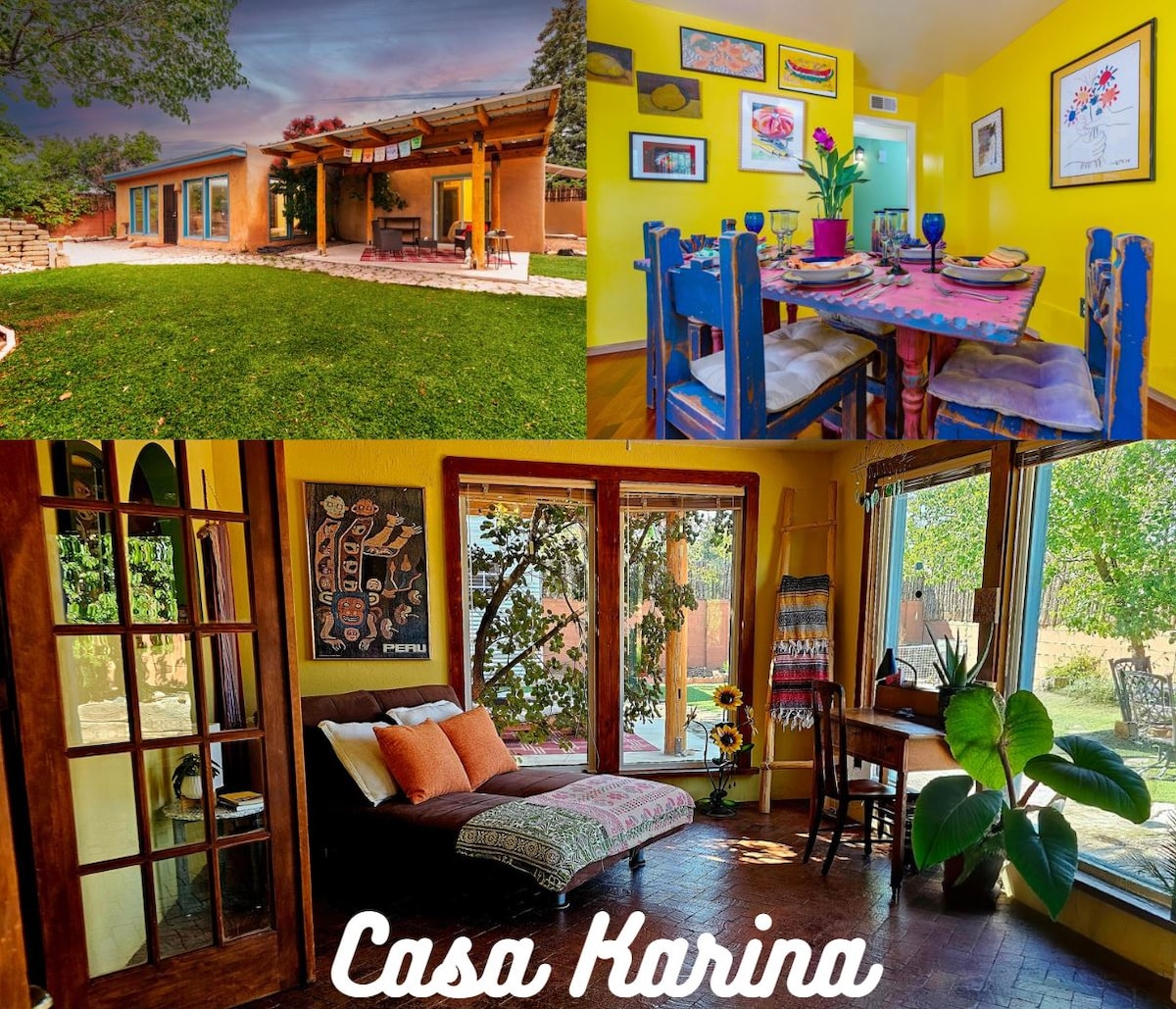 Adobe studio casita (336 sq ft) in a quiet neighborhood. Queen sized bed and full kitchen. Private, fully enclosed yard with patio and seating area. One off-street parking space. Just 5 minutes by car (2 miles) from the Plaza and Railyard, close to bike path and Frank S Ortiz dog park (138 acres with beautiful views). Half a mile from Better Day Coffee, Ras Rody's Jamaican food truck, and La Montana Co-op grocery store. Dogs are welcome! (Up to 2)