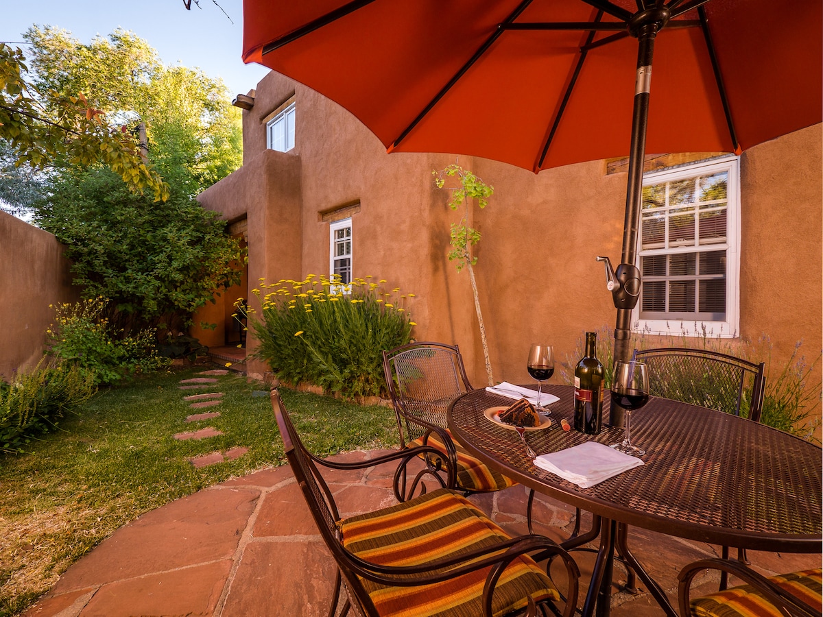 Our historic casita once belonged to a founding member of the Santa Fe arts community, painter Sheldon Parsons. A calm 1,000+ sq foot adobe retreat with private hilltop garden and 21st century amenities: Four Seasons king bed, fine linens, Los Poblanos toiletries, radiant heat, central air, Jacuzzi plus oversized shower, and a cook’s kitchen with pantry surprises, all a few blocks from Canyon Road. A perfect place to reset your creative clock. No automatic locks, we have a personal greeter.