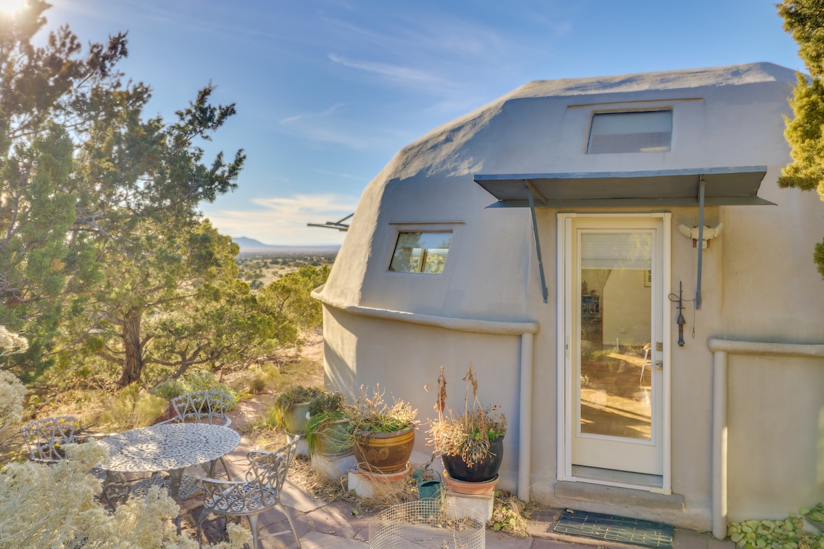 Casa de Cougletta is a creative sanctuary nestled in the hills above Santa Fe. With walls full of local art and stunning panoramic views of the Sangre de Cristo Mountains, this gorgeous, inspiring home is a short drive away from all the best Santa Fe has to offer. Featuring a truly otherworldly shower and tub, incredibly comfortable bedrooms, and dreamlike design throughout, this luxurious adobe home rejuvenates and refreshes you, mind, body, and soul for soaking in the Santa Fe enchantment.