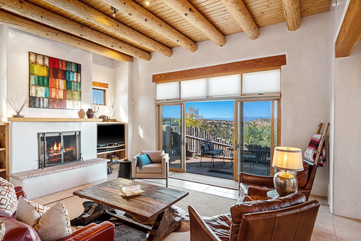 Set above the Santa Fe river, with views of Sun and Atalaya mountains, hiking trails accessible from the front door, and the shops, galleries & restaurants of Canyon Rd. just a short stroll away, "Sage Haven" emphasizes timeless simplicity & stillness. Built in 2020, the house has new strong wifi, smart televisions with AppleTV, Bosch appliances for the kitchen and laundry, a wood burning fireplace, terraces, luxurious baths, & deeply comfortable sleeping.