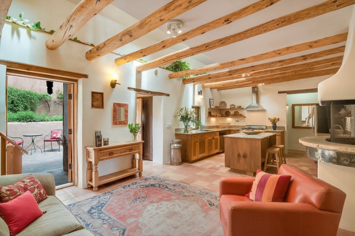 🌜H I D E A W A Y N O R T E: an inspiring & cozy adobe for your high desert adventure 🌵EASY 3 MINUTE WALK to Santa Fe's best restaurants, bars, coffee shops, boutiques, movie theaters, farmers and artisan markets. 🌵Train direct from ABQ + skip the rental car 🌵King + Queen beds 🌵Fast ⚡️ WIFI 🌵Fireplace + AC/heat minisplits 🌵Bonus Sunroom w/couch and TV 🌵Private patio 🌵Full Laundry 🌵KIDS: Pack n’ Play, high chair/booster, toys, books, white noise 🌵DOGS: beds, bowls, gated patio