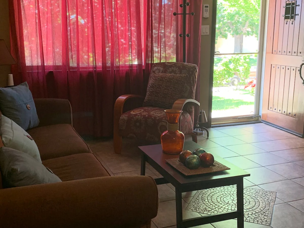 This adorable, single-level adobe studio features a walled-in private courtyard and is very close to the Santa Fe Railyard Arts District and Santa Fe Farmers' Market. It is a perfect location for a couple or small family looking for a cozy home base to explore the cultural capital of the southwest. Complimentary bicycles provide easy access to downtown via the nearby bike trails and the remote-work desk, lightning-fast wifi, and laundry machines offer added convenience for a seamless stay.