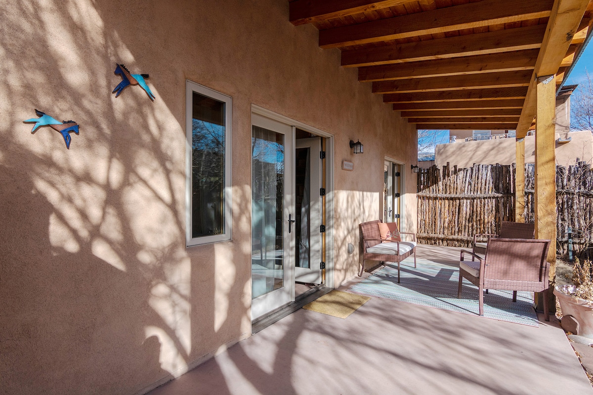 Dos Suenos -Two dreams...WALK TO PLAZA Beautifully crafted & spacious 2 bedroom/2 bath home with traditional New Mexico elements. Located in Santa Fe’s historic neighborhood of adobe walls & wooden gates. Quaint & quiet tree lined street ,12 minute EASY walk to the Historic Plaza. Perfectly designed with 2 separate & private bedroom areas, luxurious linens, towels & high-end amenities A well balanced home with southwest decor, designed for comfort & quiet!!