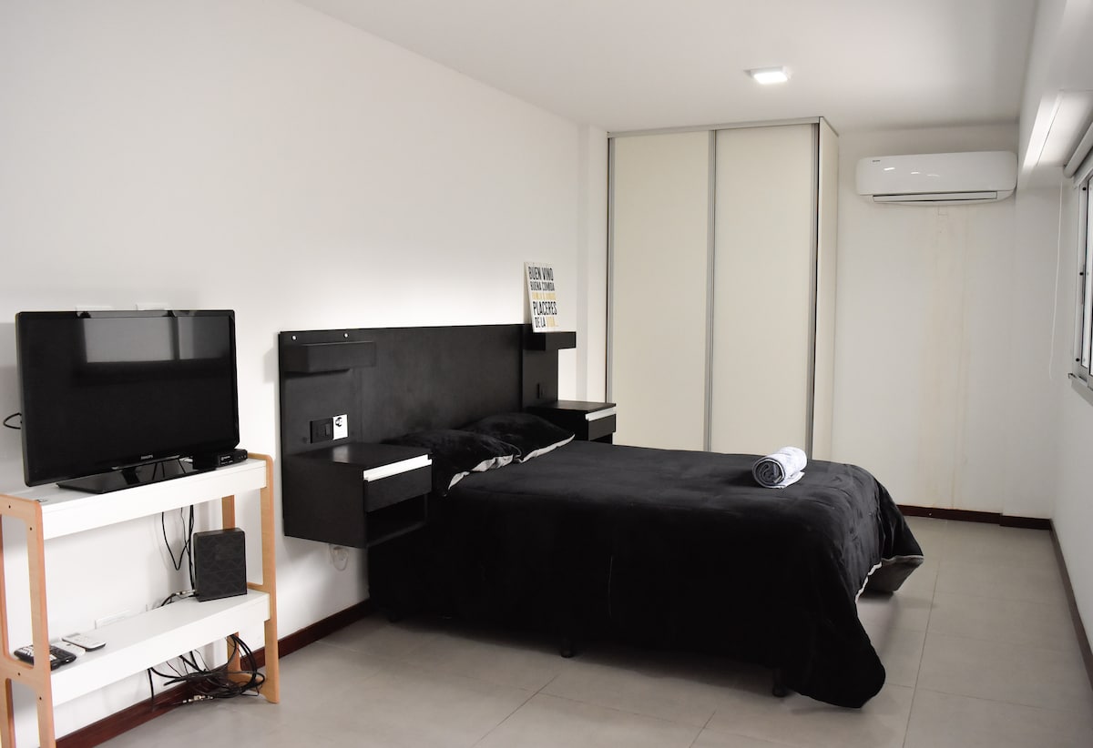 Monoambiente cálido y funcional, ideal para estancias largas. Luminoso, tranquilo y con balcón, cuenta con heladera, cocina equipada y mobiliario práctico para el uso diario. Funciona muy bien para estudiantes o personas que vienen por trabajo y buscan una estadía cómoda a buen precio.