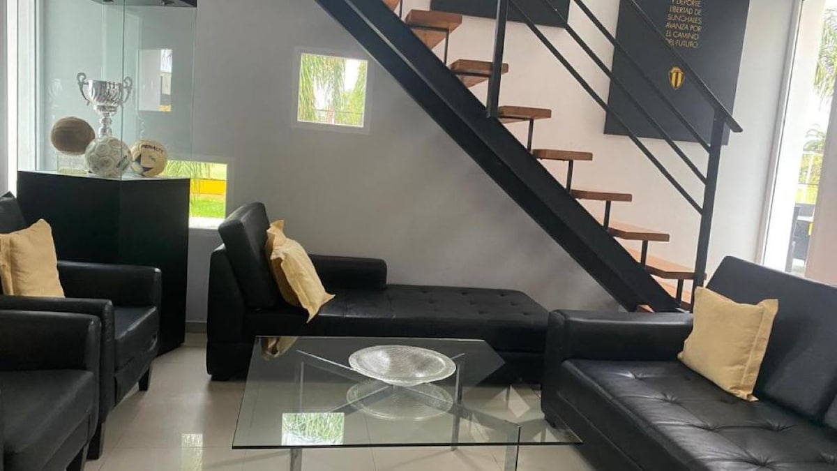 La Posada de los Tigres está ubicada en la ciudad de Sunchales, Capital Nacional del Cooperativismo dentro de un predio de 40.000 m2. Cuenta con 16 habitaciones, desayunador, un moderno diseño y ubicación ideal, a pasos del centro. Servicios : hiperconectividad, TV, climatización, desayuno y sandwichería Podés relajarte en diversos espacios ( jardín y sum especial para eventos, lobby, pileta, gimnasio, canchas de paddle, tenis, basquet, fútbol) La buena atención y el servicio de calidad