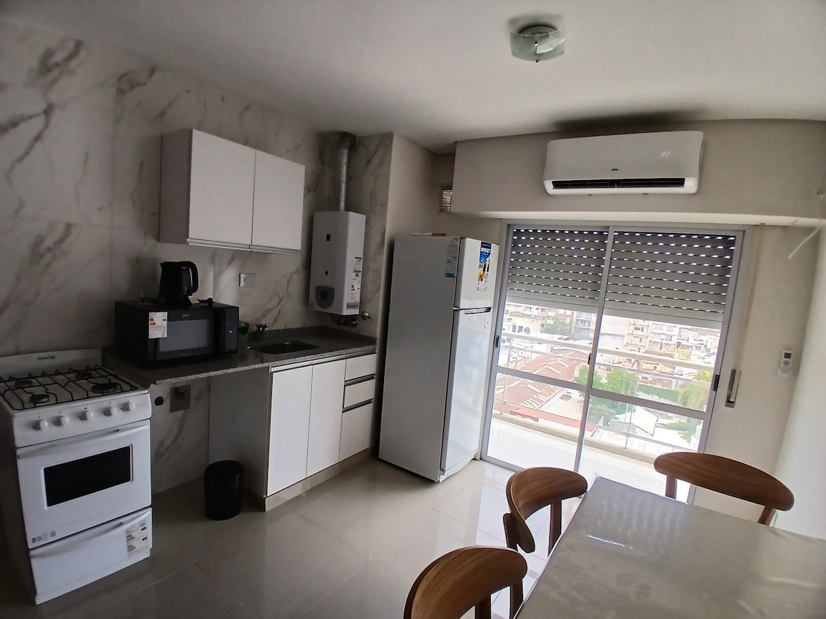 El alojamiento es un monoambiente muy luminoso y confortable, ventilación cruzada. El departamento se encuentra ubicado en el segundo piso se accede por escaleras. El mismo se encuentra en proceso de decoración especialmente para nuestros huéspedes y posee una cocina con amoblamientos amplios y muy completa (horno eléctrico, anafe eléctrico, cafetera, tostadora, heladera, pava elèctrica).