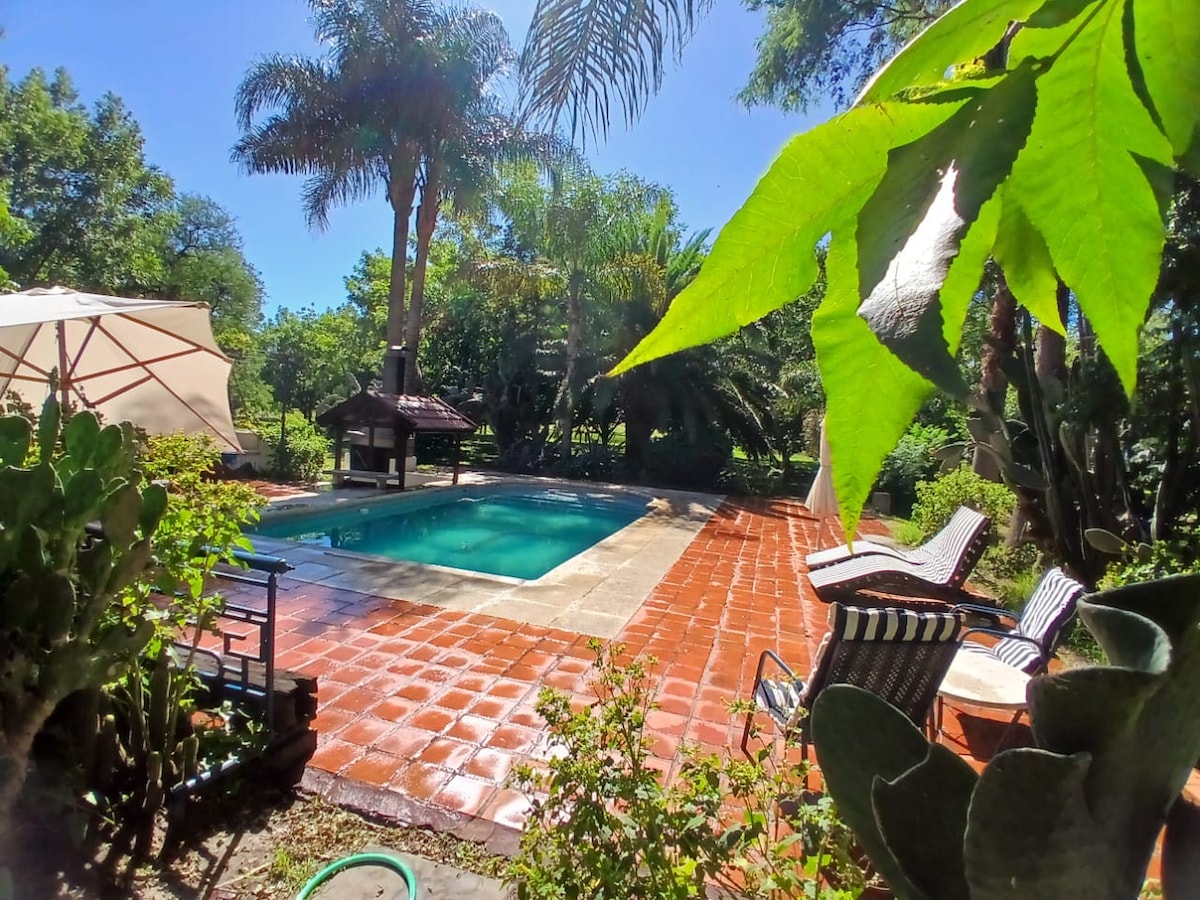 核桃林中的房子,泳池和烧烤架。