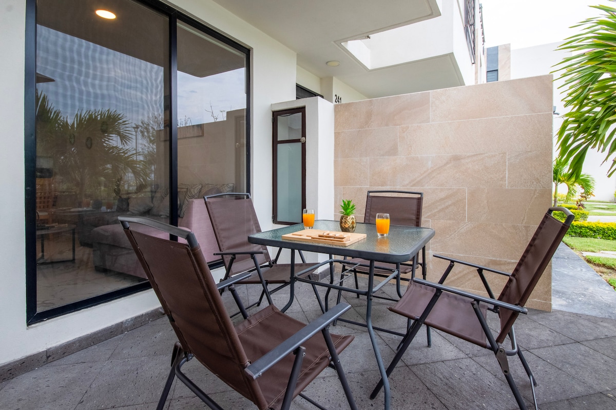 Estrena casa de 1 piso en Club de Golf Cuernavaca Centro. Rodeada de vegetación, a 5 minutos del Centro. Durante el día disfruta la alberca gigante con celdas y bomba de calor área de asar, cómodas habitaciones y triple vigilancia. Durante la tarde/noche disfruta de restaurantes como las Mañanitas, Casa Hidalgo donde puedes incluso llegar caminando. Si no quieres salir disfruta del campo de Golf donde puedes tomar un café, o ir a comer rodeado de pavorreales, lagos y vegetación