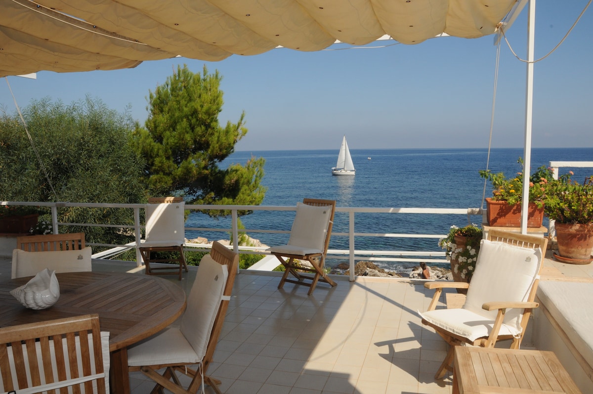 Exclusive and independent apartment within a splendid villa overlooking a delightful cove along the Addaura coastline, which links Palermo to the well-known Mondello beach. For guests who will not settle for a house just by the sea but want it ON the sea. Access to the sea is private and direct, through a private gate and a few steps that lead from the front door to a comfortable seafront frequented only by the villa's guests. The host's family lives in the villa, in independent apartments.