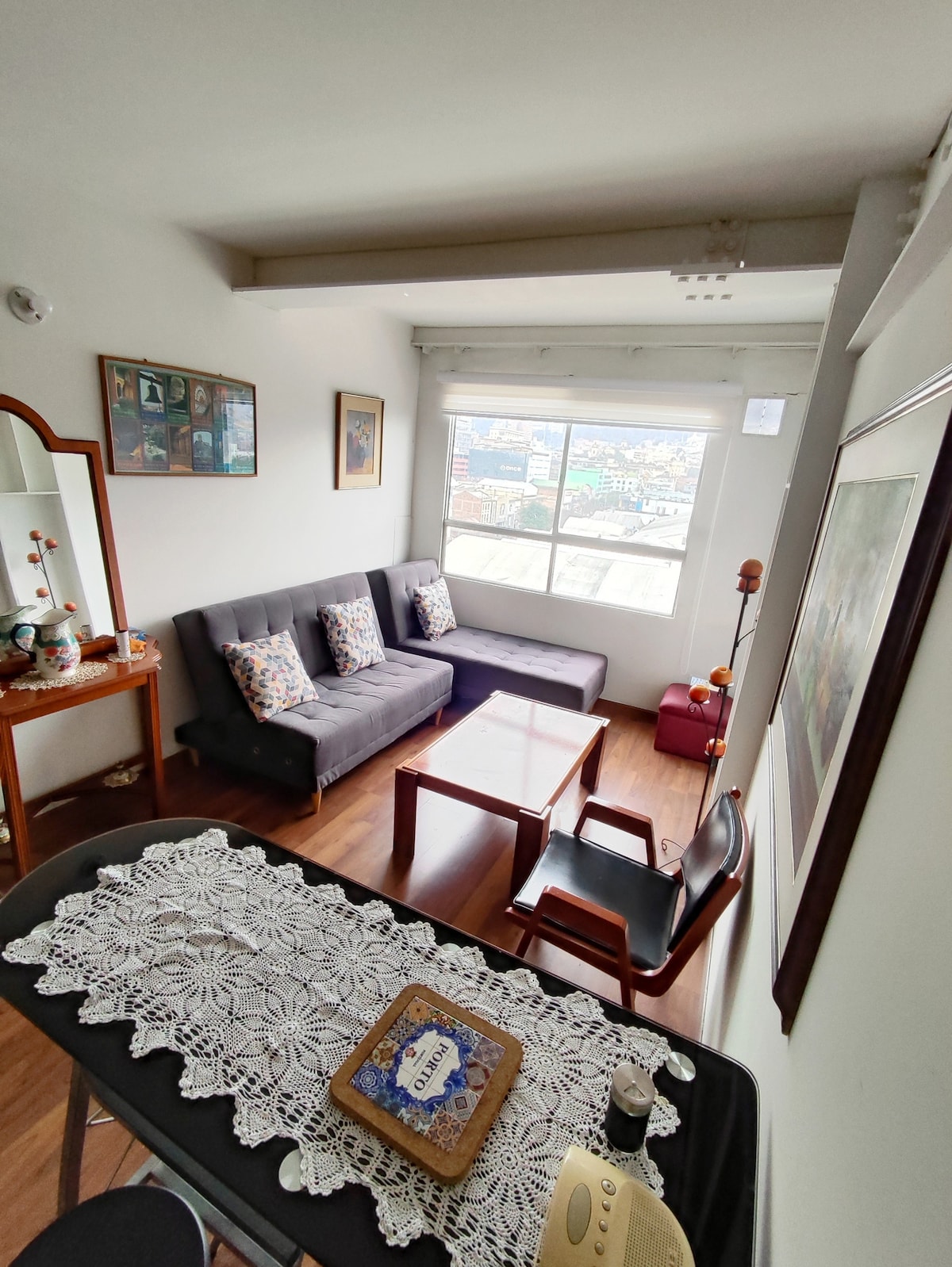 Welcome to your charming apartment in Bogotá’s historical center: La Candelaria! This cozy apartment blends modern comfort with cultural richness. ⛰️Enjoy views of Monserrate and Bogotá's mountains while you stay warm by your gas fireplace on chilly evenings. 🏛️You’re just minutes from the Gold Museum, Plaza de Bolívar, Botero Museum, and many restaurants. 🏪 A 24/7 Oxxo supermarket is 20 meters away, complete with ATMs, and an Exito supermarket is 500 meters (8min walk) from the building