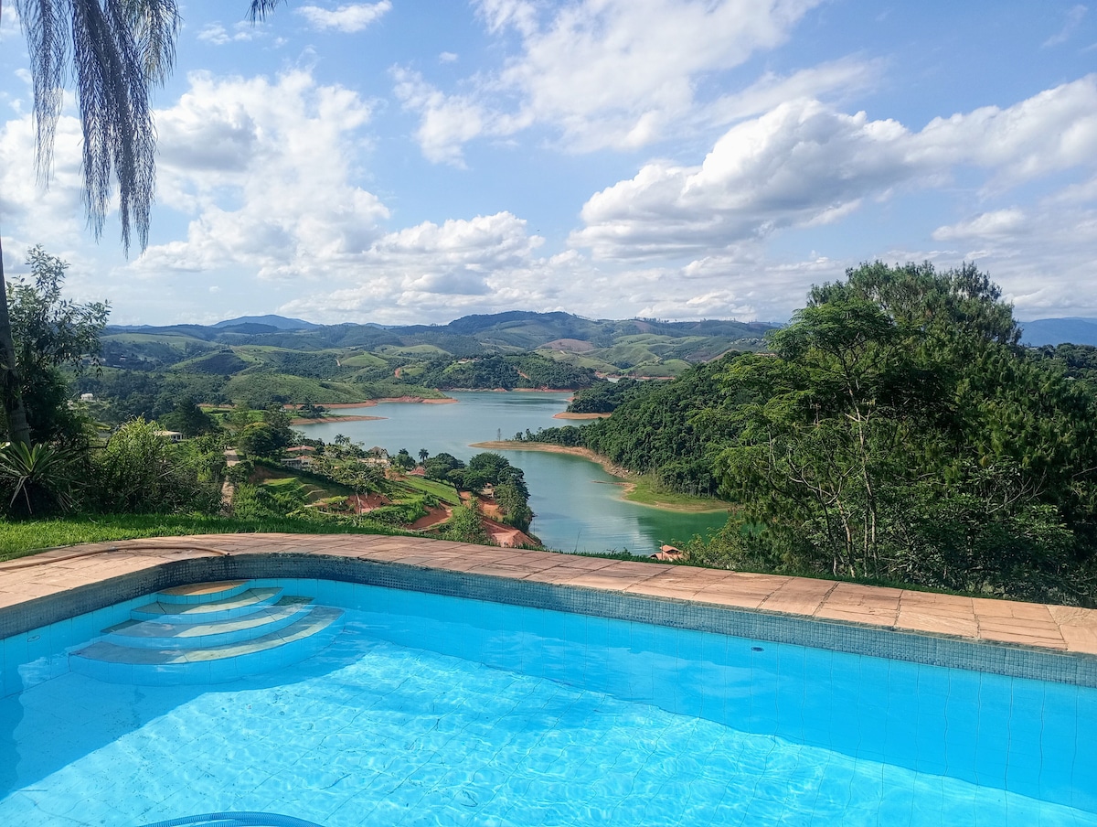Chácara com vista panorâmica cinematográfica. Foi toda reformada e está toda completa, com Wi-Fi e todos os canais liberados, bem como churrasqueira, piscina e ventiladores em todos os cômodos. Varanda bem ampla com gramado impecável no território do imóvel. Perfeito para famílias com crianças que desejam relaxar diante de uma vista linda e panorâmica. Temos caseiros na chácara que realizam as manutenções do gramado e piscina diariamente para que tudo fique maravilhoso sempre !