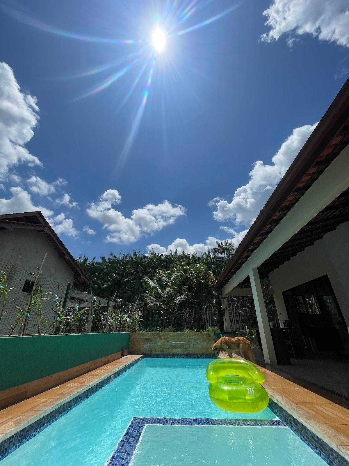 Leve toda a família a este ótimo lugar com muito espaço para se divertir. estilo fazenda, tem animais, lago prar pescar, igarape, também tenhe treis área de lazer do condomínio com piscina olímpica