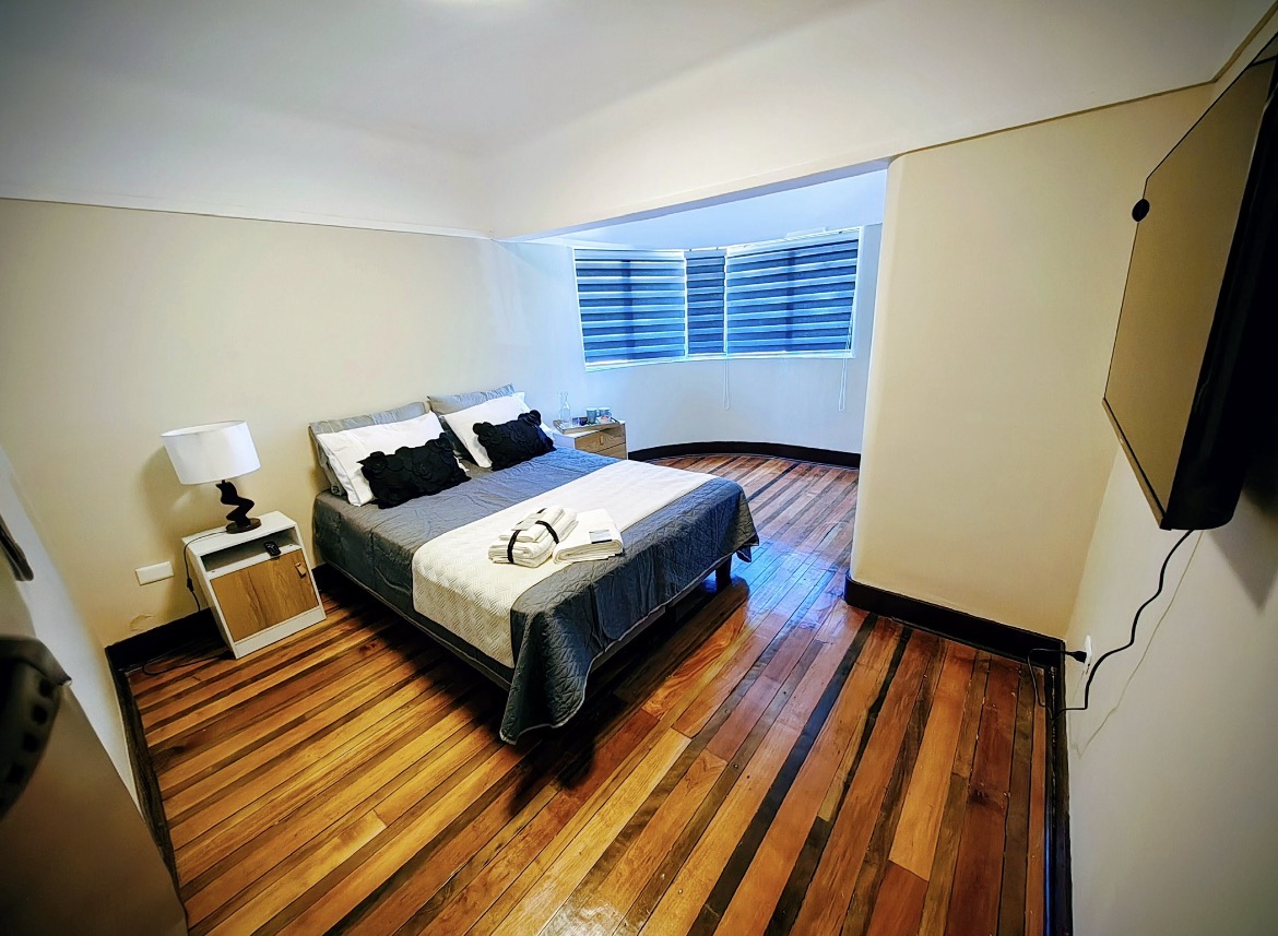 Esta habitación de hotel boutique elegante ubicado en una casa de 1938, en una calle sin salida de una zona moderna, está a 2 minutos a pie de la estación de metro Bellas Artes y a 9 minutos a pie de los edificios majestuosos que rodean la plaza de Armas. Habitacion sencilla y acogedora con cama king cuentan con TV de pantalla plana y ventanas amplias con balcón. Incluyen aire acondicionado, baño privado, closet, toallas, jabón y área de visitas.