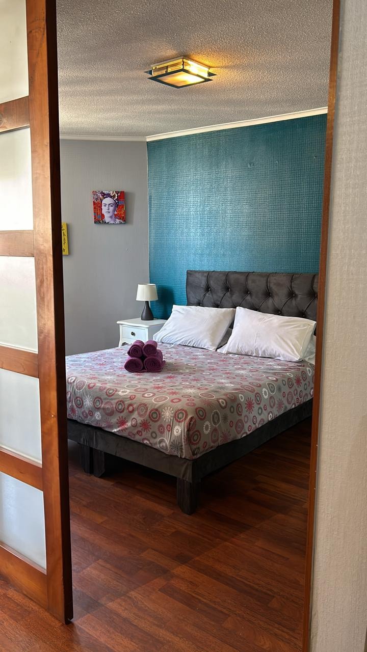 Departamento amoblado, cocina equipada, baño con lavadora/secadora, dormitorio principal con televisor, sala estar con sofá cama, comedor, wifi, edificio seguro con conserjería y circuito cerrado. Ubicado en el barrio de Lastarria, frente al cerro Santa Lucia, a pasos del metro y del Museo Bellas Artes. En una zona eminentemente turística, en medio del centro histórico de la ciudad, rodeado de parques, restoranes, museos, centro comercial y muchas zonas de interés.