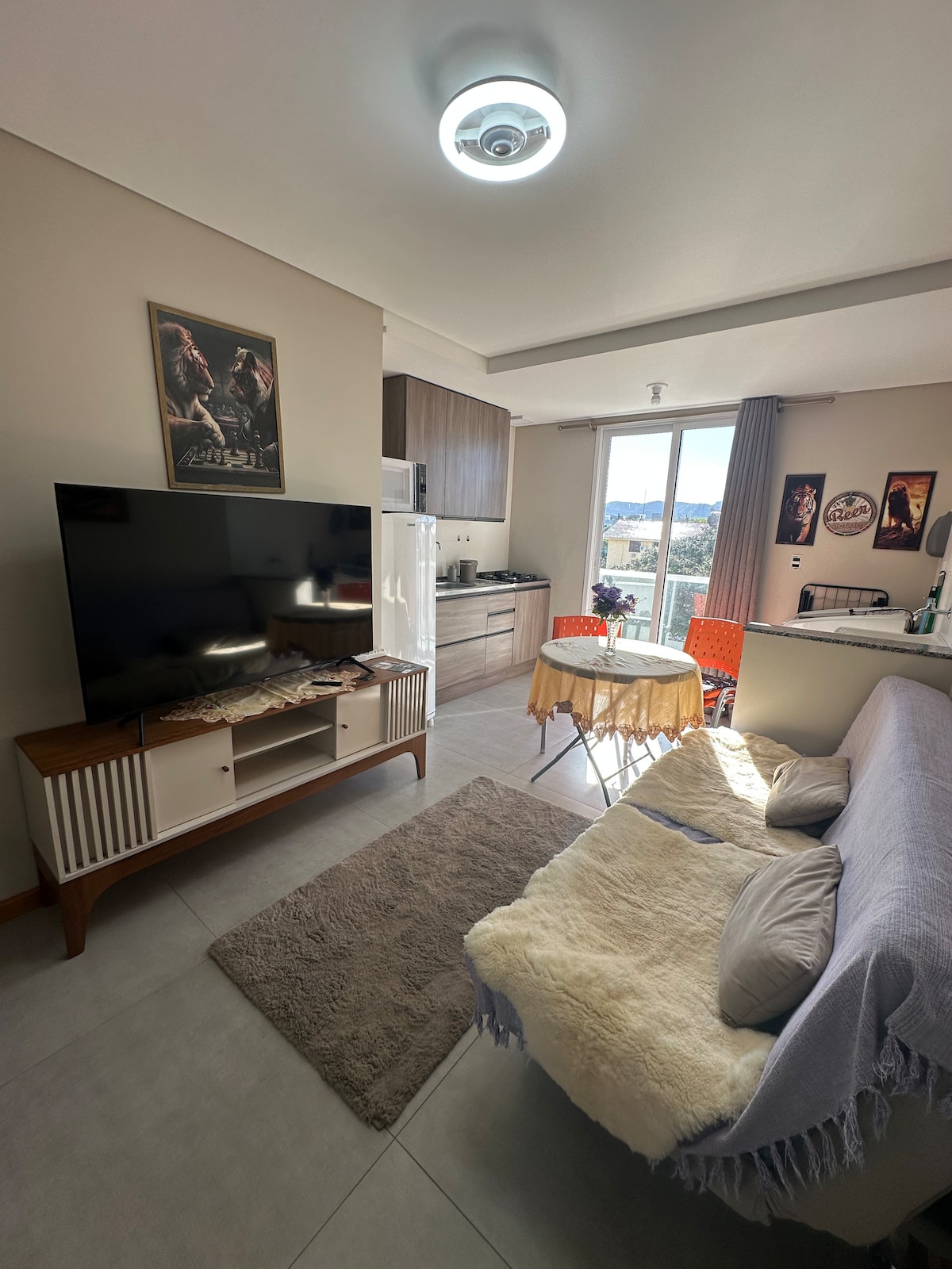Ap de 01 dormitorio, no oitavo andar, prédio novo, com elevadores e garagens com excelente acesso e tamanho. Prédio com monitor de segurança Apto com ar condicionado(quente/frio), TV ( Smart) na sala. móveis, eletrodomésticos e utencílios, todos novos, sacada com churrasqueira. Localizado no centro de Sta Maria a 40 metros da UFN e menos de 5 minutos do calçadão. Perto de mercado, farmácias e de todo o comércio da cidade. Localizado a uma quadra da maior parada de ônibus com destino a UFSM.