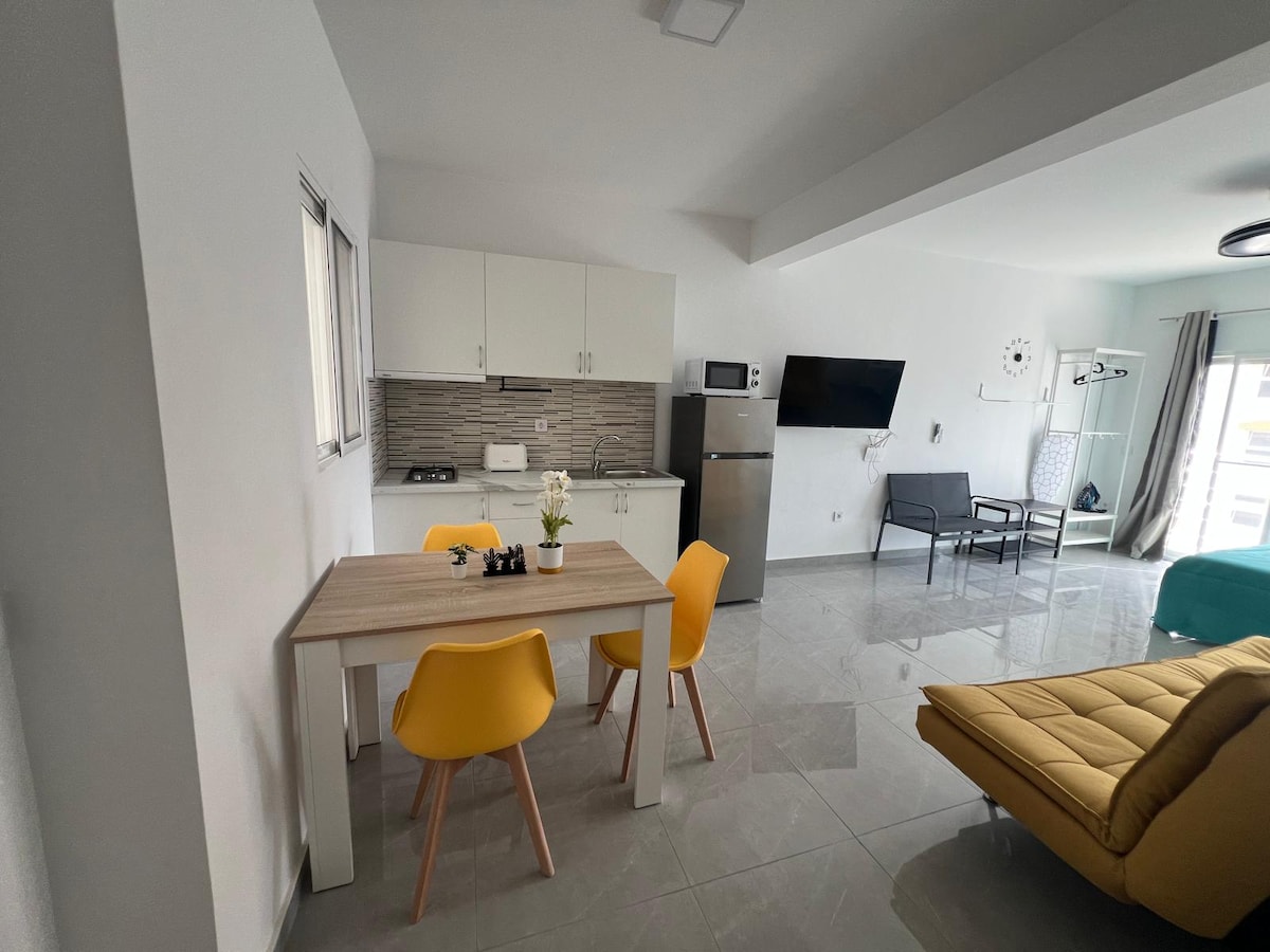 Are you looking for an apartment near the beach and the center of Santa Maria, Sal Island? Welcome to Animoss! Apartments 🌊 Enjoy this beautiful 50m² apartment located on the third floor with 1 bedroom, living room with kitchen, bathroom, and balcony. 📍 Perfect location: just a 3-minute walk from the best beach on the island and the center of Santa Maria, where you’ll find all kinds of services. 🌐 Free, fast Starlink WiFi included for your comfort.