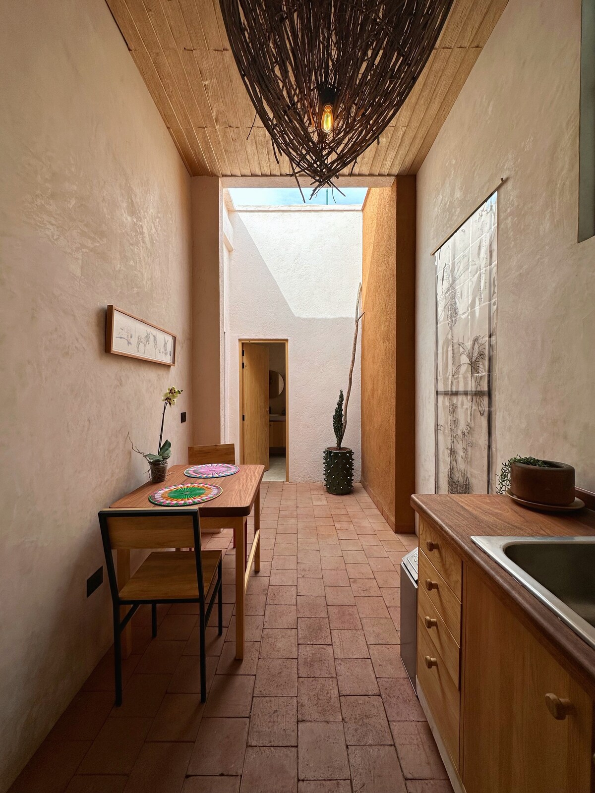 Architect-designed home, a collaboration with architect Daniel Lopez Salgado. The thoughtfully planned layout, soaring ceilings and abundant light create a calming atmosphere, perfect for unwinding after a day of exploring. 15-minute taxi/car ride from Oaxaca Centro, our home offers a perfect balance of tranquility and accessibility. While you won't find tourist spots nearby, you'll be able to find flavors of Oaxaca at local family owned restaurants nearby.