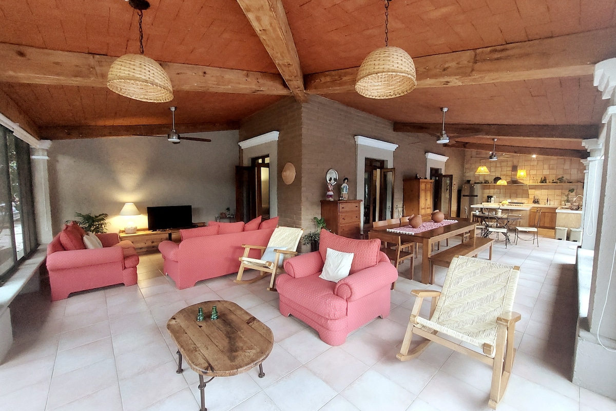 Beautiful country house with a large garden, pool, children's playground, and palapa with grill, less than 9 km (20 mins) from Oaxaca City, in Santa María del Tule, home to the ancient Tule Tree, hiking and biking trails, the Mezcal Route, archaeological sites, and handicrafts. The ground floor of the house sleeps 12, but is ideal for 7-9 people. If you require more space, a better layout, or more room, we have another listing that includes the Loft: https://airbnb.com/h/casaquintamar2
