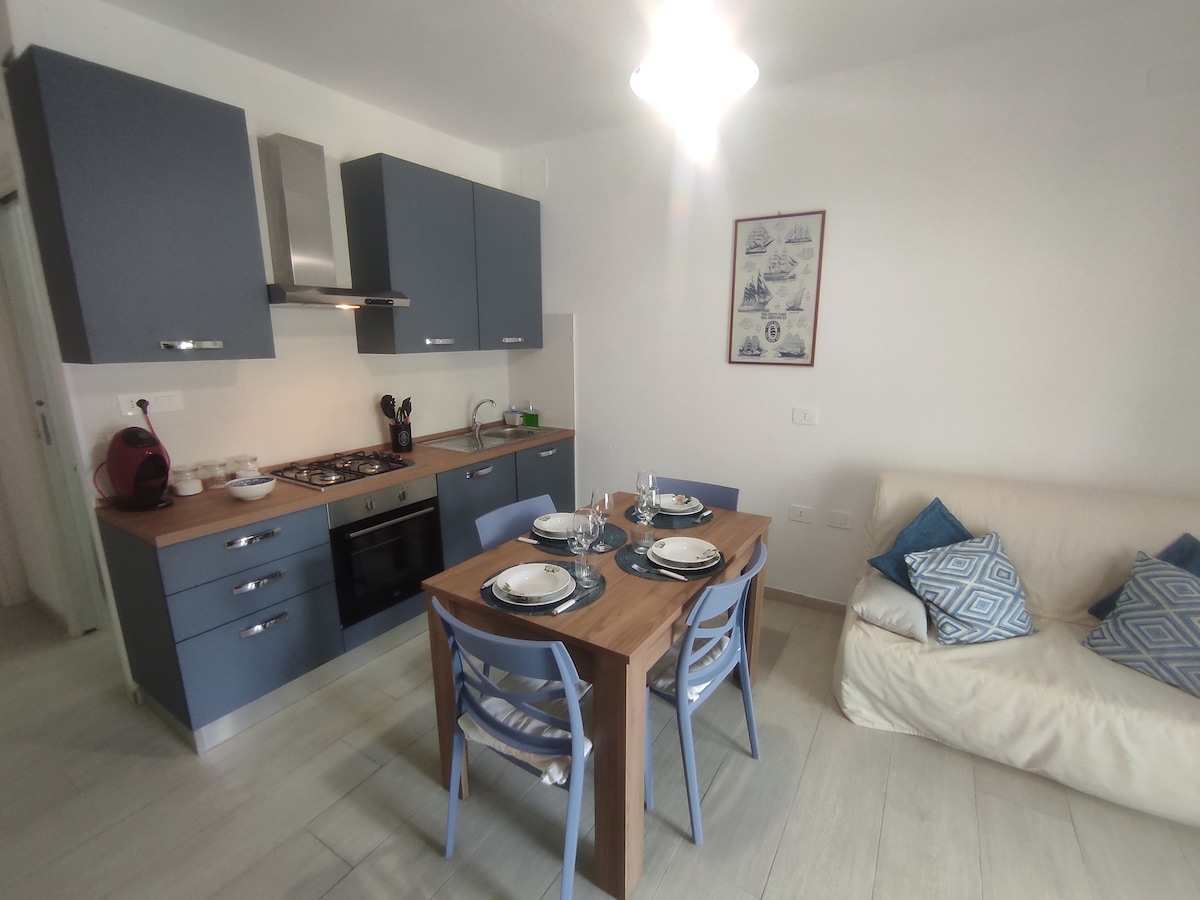 Splendid apartment located in the heart of Santa Maria di Castellabate with an independent entrance. It consists of one double bedroom, one bedroom with bunk beds, 2 bathrooms, a spacious living room with a sofa bed, a kitchen equipped with every comfort, and an outdoor space. All rooms are also equipped with air conditioning, and there is the possibility of private indoor parking. Super strategic location, just a few steps from the city center and a few minutes from the sea.