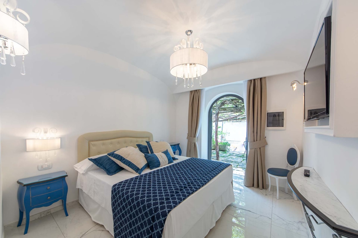 “Palazzo Gargano" room is located right in the centre of Amalfi, its terrace overlooks the main street of the town and, the palace in which it is located, is one of the most hystorical one in town. Inside this palace you can admire frescoes and columns .