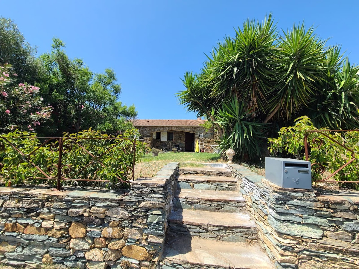 Immense propriété unique et tranquille maison de plein pied, dizaine de terrasses vue 270° mer et 90° montagnes et vignes. Piscine débordant vers la mer. Loin de tout sur 6 ha privés de maquis et jardin méditerranéen à seulement 10 min de Saint-Florent et 3 km de piste privée montant la colline jusqu'à la crête 80 mètres au-dessus de la mer. Une plage de galets et la vallée en contrebas. En haut, un bijou de cabane centenaire en pierres sèches et sa terrasse avec vue 360° mer, montages, vignes