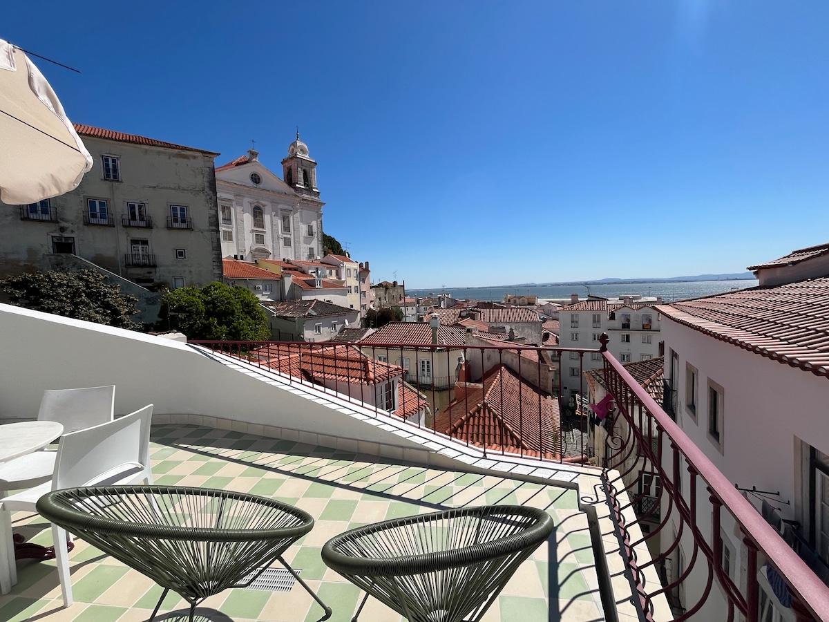 Lindo duplex no centro de Lisboa- bairro da Sé/Alfama. Vista espectacular sobre toda a cidade e Rio Tejo. Próximo de transportes como Eléctrico 28, 18, autocarros, metro, comboio e barco. Próximo dos serviços como supermercados, atracções turísticas e museus. Ideal para uma verdadeira descoberta da cidade.