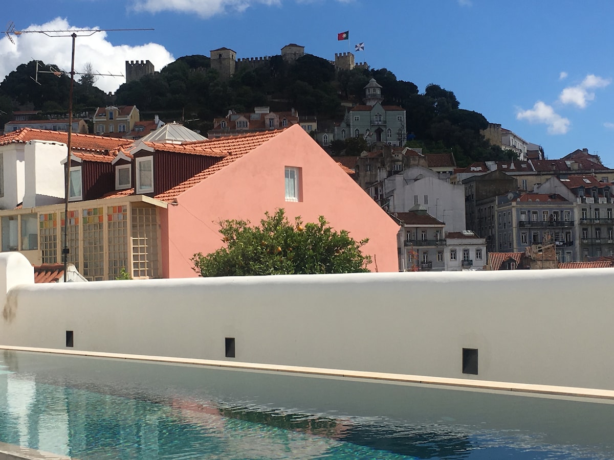 This utterly charming and genuinely luxurious apartment in the heart of Lisbon's oldest quarter comprises a very large living room and a double-bedded and a twin-bedded room each with its en suite bathroom with tub and/or shower. It is air-conditioned and centrally heated throughout. The kitchen area is of course fully equipped. It has a breakfast terrace, swimming pool, and is blissfully free of ambient noise. The private entry has three steps.