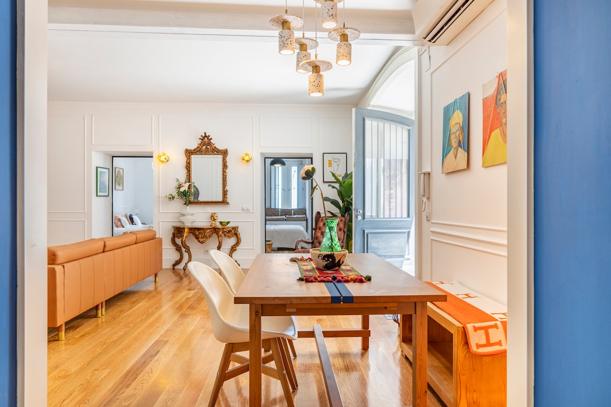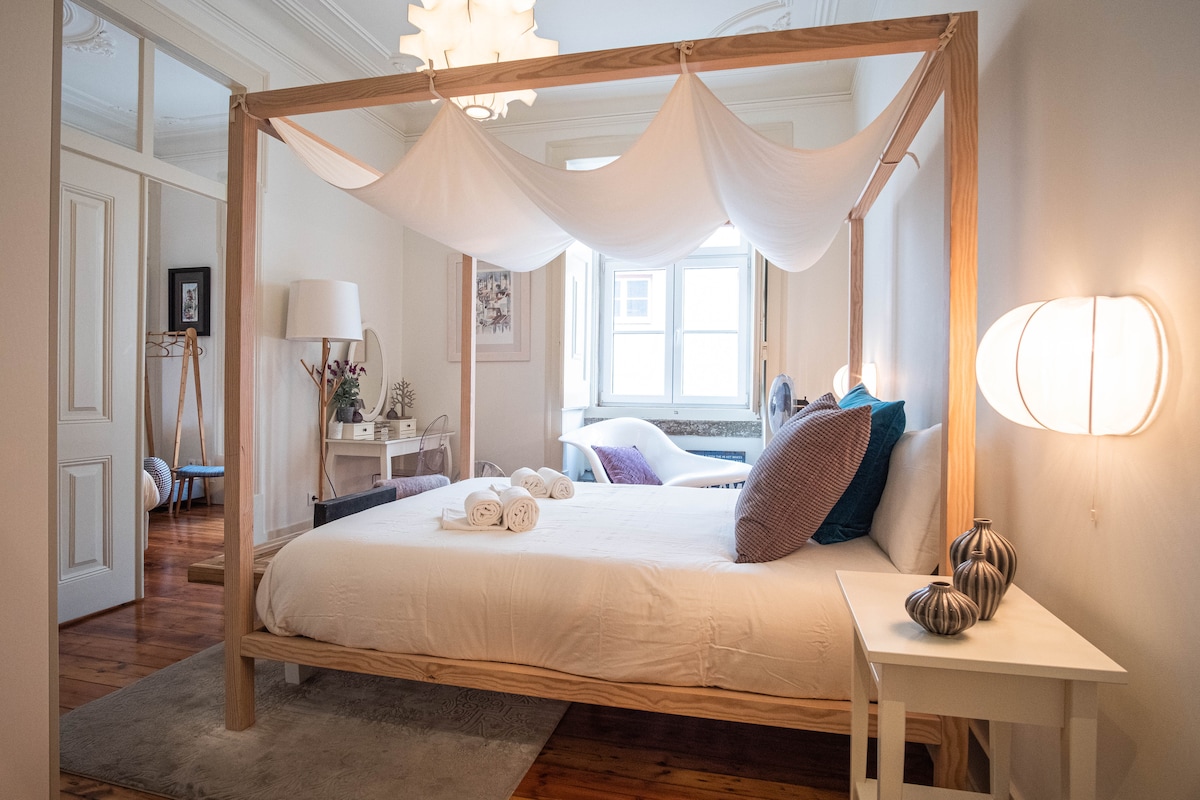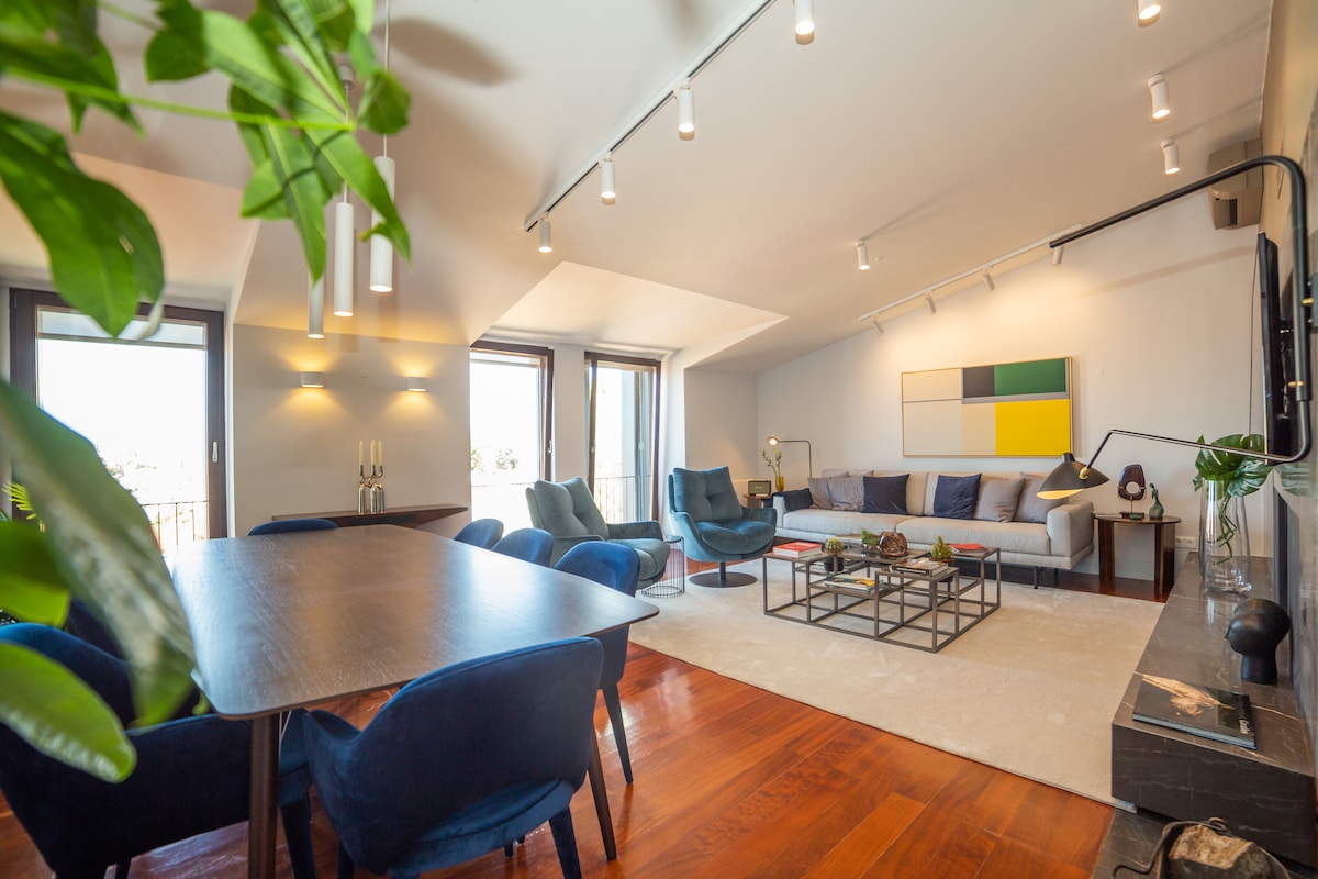 Luxurious three bedroom apartment overlooking the Tagus, in a completely renovated building in Príncipe Real neighborhood- one of the most charming and popular locations in Lisbon. Surrounded by shops, bars, restaurants and all public transportation you could need. Next to Chiado and Bairro Alto, but with the tranquility and charm of Príncipe Real. Extremely quiet and beautiful. An excellent choice for families or groups of friends looking for comfort, peace, and a great location.