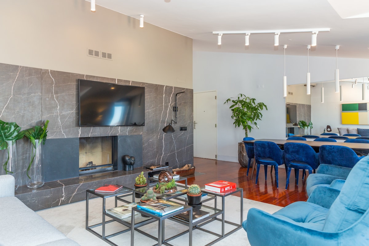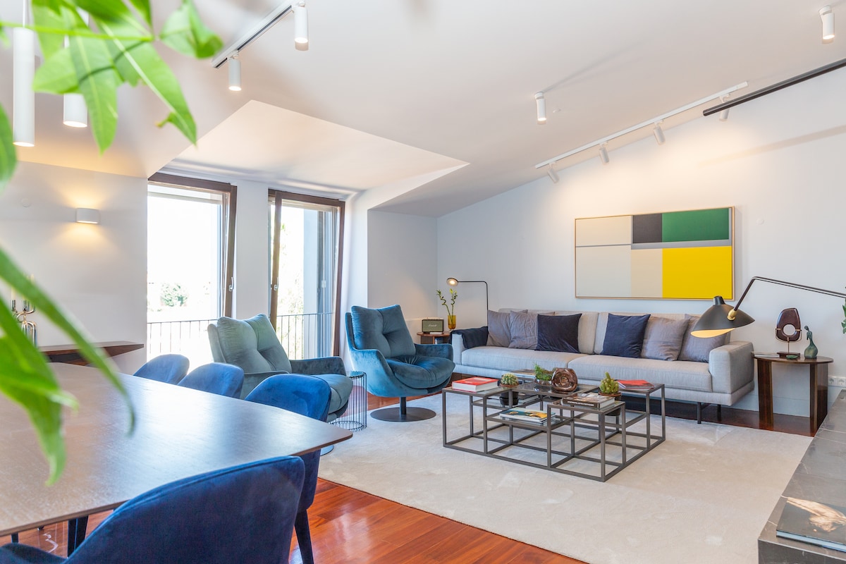 Luxurious three bedroom apartment overlooking the Tagus, in a completely renovated building in Príncipe Real neighborhood- one of the most charming and popular locations in Lisbon. Surrounded by shops, bars, restaurants and all public transportation you could need. Next to Chiado and Bairro Alto, but with the tranquility and charm of Príncipe Real. Extremely quiet and beautiful. An excellent choice for families or groups of friends looking for comfort, peace, and a great location.